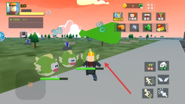 2、按指引前往野外,遇绿色飞怪,点右侧攻击键战斗,优先清理指定数量,如捕3只完成目标。