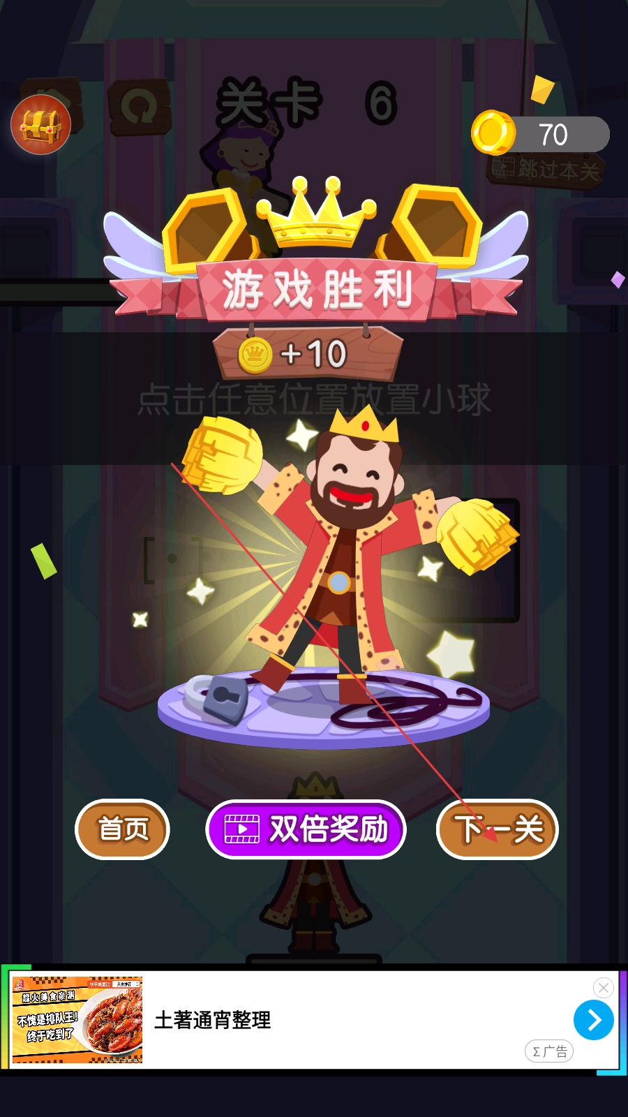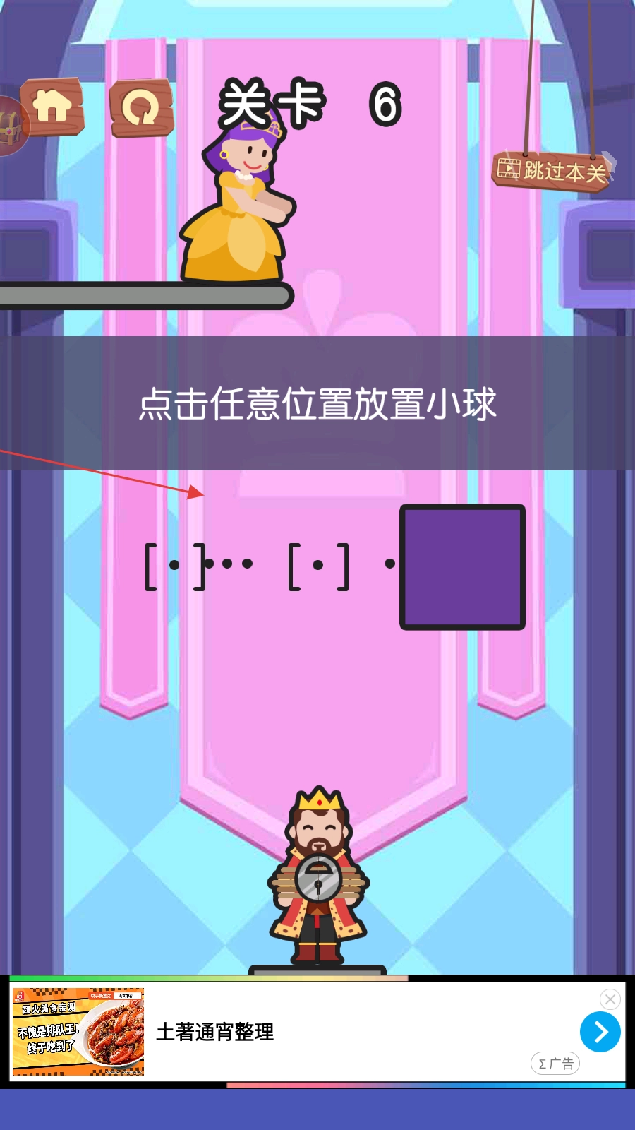 3、点击屏幕放置小球,让小球碰到国王即可拯救国王。