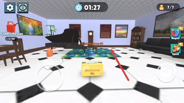 1、一开始在一间房间里,和队友做好分工,由一人负责寻找Collect the Gas汽油罐,优先拾取地图上标注的红色油桶。