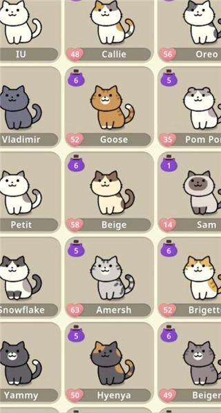 2、随着等级的提升,将可以解锁更多的猫咪用品,给猫咪换上美味的食物和各种娱乐设施,就能吸引更多的新猫加入你的家园。