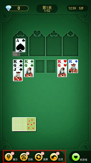 1、要是你陷入僵局——提示、回收、后退和洗牌这些方法都能帮你赢得胜利