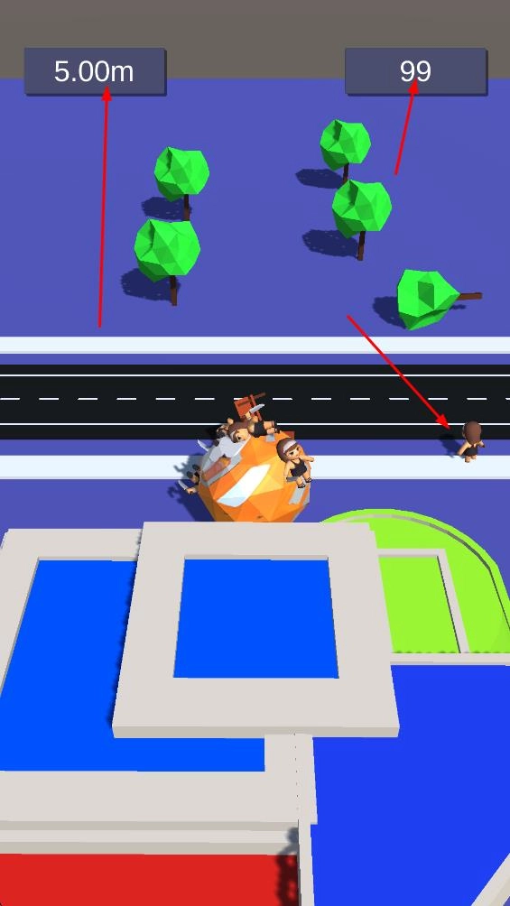 2、球体可以撞击行人,使其被吸附在球体上,随着吸附的行人数量增加,球体的体积会逐渐变大。