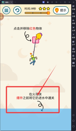 1、玩家需要仔细观察关卡布局,根据提示找到关键红色物体并点击,助火花侠掉入水中完成救援任务。