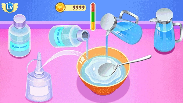 2、添加各种史莱姆原料,将其混合搅拌,制作你想要的效果