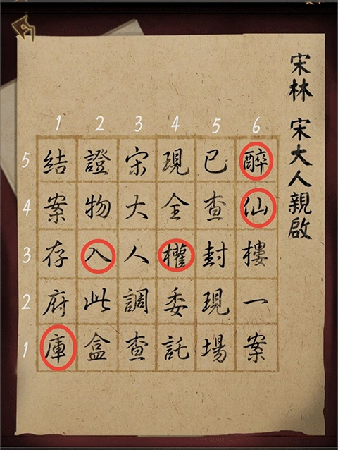 5、来到走廊尽头,点击盒子下的信,然后根据信纸内容得出盒子密码为:六六四二一、五四三三一