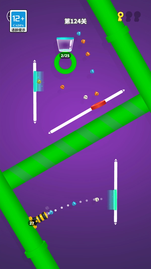 2、从简单的单目标射击到复杂的多障碍清除,从直线射击到需要利用反弹的间接射击,每个关卡都为玩家带来了不同的挑战;