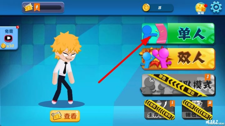 2、角色个性养成:可对火柴人进行升级,提升生命值、攻击力等属性,解锁专属皮肤,打造独一无二的战斗形象。