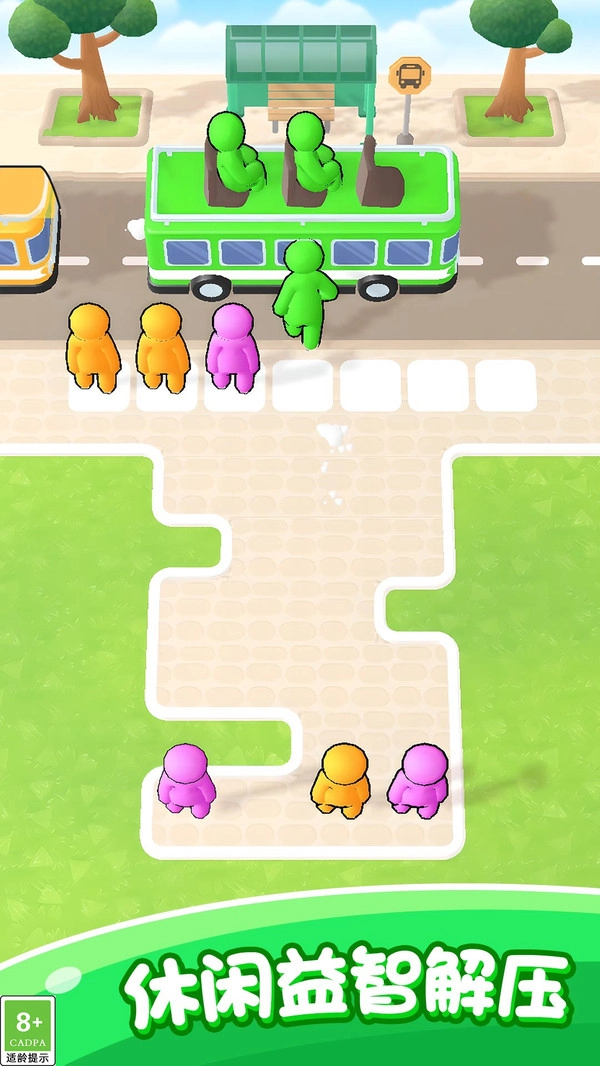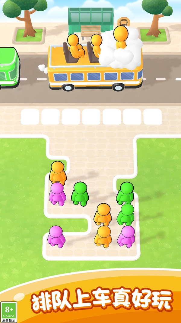 排队乘巴士邀你开启一场超欢乐的配色冒险之旅!在这个五彩斑斓的世界里,你得迅速辨认乘客和巴士的颜色,轻轻点击屏幕,就能让同色系的小伙伴们排起整齐的队伍。随着关卡不断提升,排队乘巴士的挑战会越来越带劲——不仅要眼疾手快,还得讲究策略和顺序。操作简单容易上手,乐趣却无穷无尽,赶紧来开启这场妙趣满满的乘车大冒险吧!