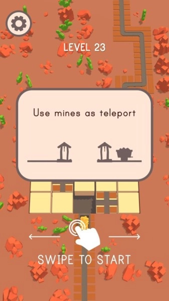 2、不停地移动轨道,将没有轨道的沙石全部挪开,让轨道连接起来,让黄金矿车前进。