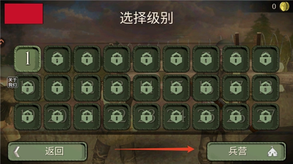 5、然后可以选择关卡,通关了关卡1才能继续后面的关卡,在进入关卡之前可以点击兵营进行兵种管理。