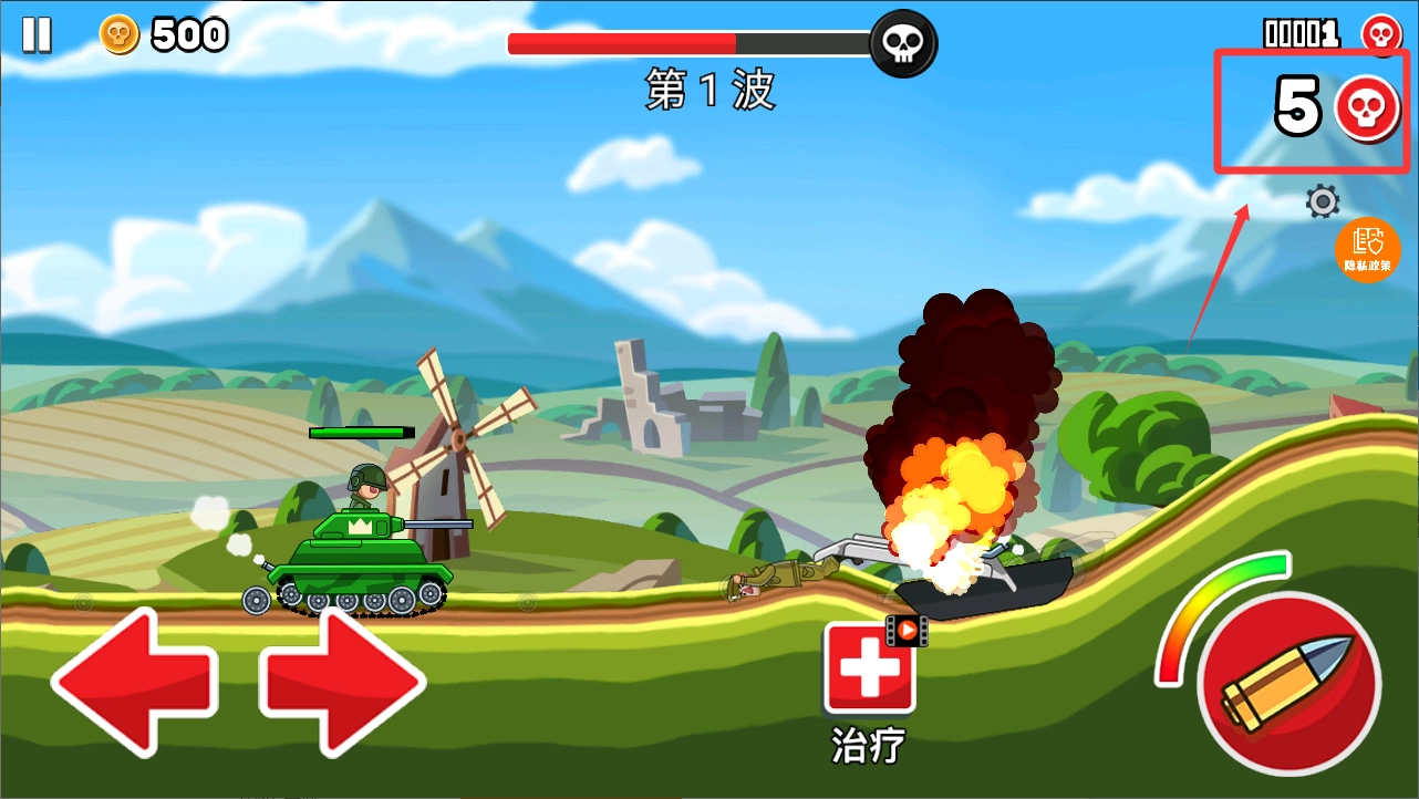 4、右上角红色框框那里是击杀的敌人数量。