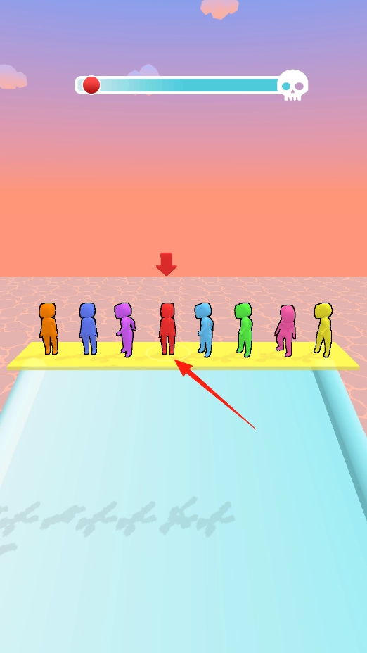 2、观察人物队列选择红色角色,让其进入跑道操控滑行躲避障碍,争取安全抵达终点,体验角色选择玩法。