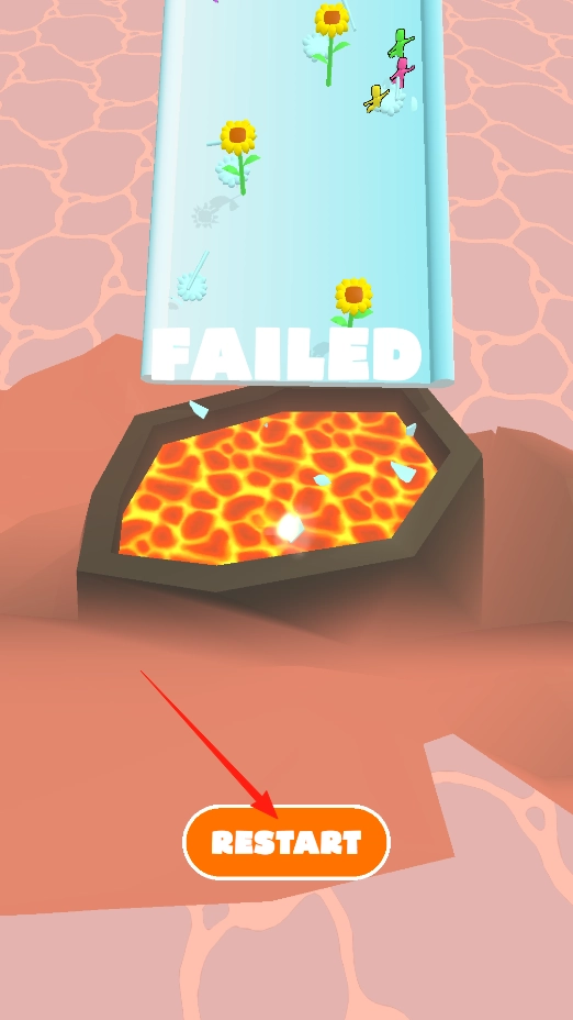 3、挑战失败后,点击RESTART重新开始游戏,调整策略,尝试让角色顺利通过跑道,体验失败重试机制。