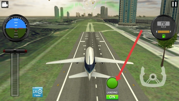 2、如果在需要降落阶段点击LANDING ON的按钮,开启降落模式,辅助飞机平稳的着陆。