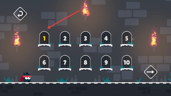 2、关卡选择页陈列多座墓碑,寻到标有1的墓碑,点击进入,正式开启游戏首关的挑战之旅。