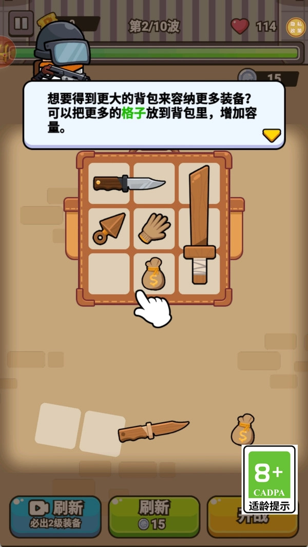 1、先用银币刷新商店,购买基础攻击武器填满初始背包格子,确保第一波怪物出现时已有稳定输出,避免初期劣势。