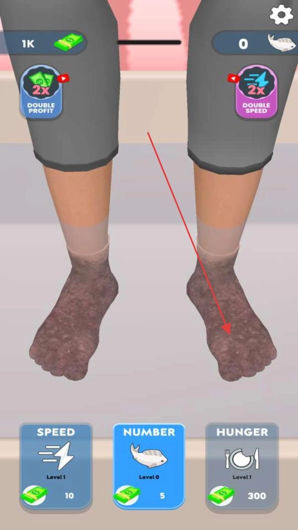 1、启动游戏后,把双脚放进鱼疗池,小鱼游动时会生成金币,点击“DOUBLEPROFIT”这类增益效果,就能提高收益。