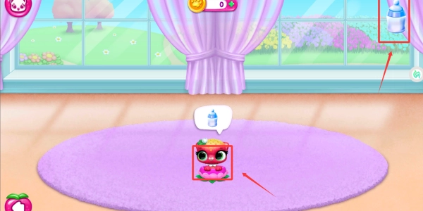 3、需要移动右上角的奶瓶移动到它嘴巴。
