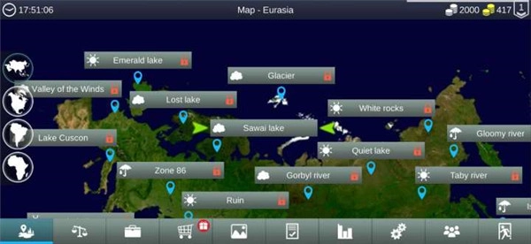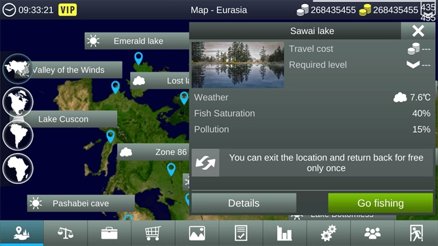 玩家进入游戏后,会看到多个不同的钓鱼区域可供选择,每个区域都有独特的鱼类和环境。