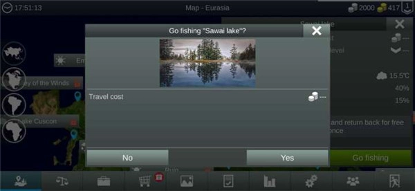2. 选择心仪的区域后,点击“确定”按钮,即可进入该区域开始钓鱼之旅。