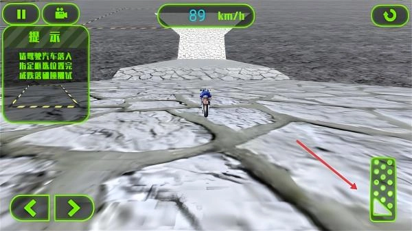 3、行驶到干裂路面,借助右侧按键(类似操作区),保持平衡、调整车速,通过复杂地形,完成关卡解锁新车辆。