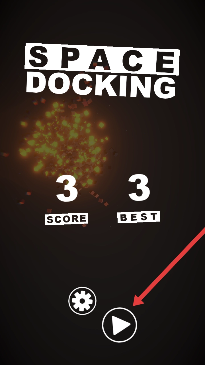 1、进入链接空间游戏界面后,需点击箭头所指的播放按钮,开启专属于自己的太空对接冒险之旅。