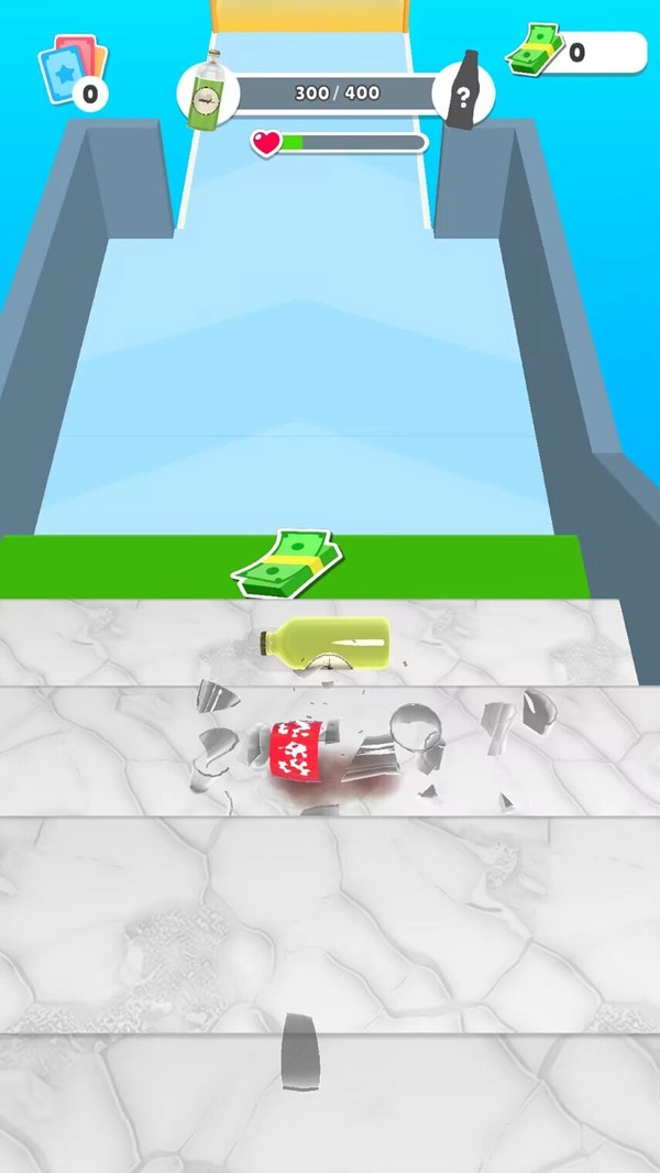 2、如果瓶子被打碎、撞到障碍物,或者在到达终点前掉落楼梯,游戏即宣告失败,玩家需要重新开始当前挑战。