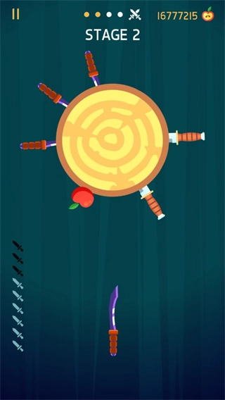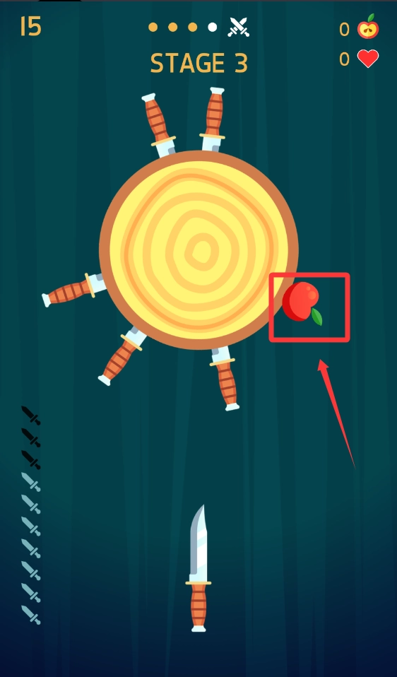 2、在点击飞刀的时候需要避免打到苹果哦。