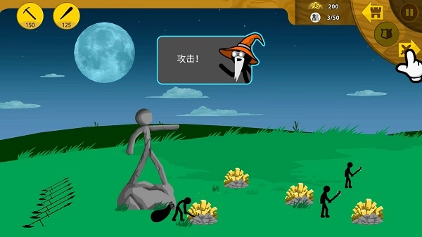 有必要正确分配矿工开采的黄金。首先,训练一些防御矿工的单位,例如弓箭手和剑士。进一步,根据战术,增加军队,或者积累资源来培养魔法师或巨人。请记住,即使是最强大的单位也无法单独对抗敌军。