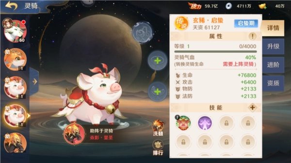 ● 资质培养:消耗资质丹可培养,可通过灵骑寻迹活动以及单独购买获得。