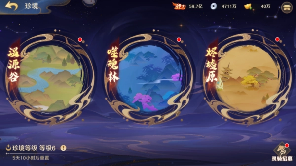 在珍境开放噬魂林后,星痕(剑)、绮梦(狐狸)、圣牯(牛)为玩家填补了灵骑上阵的空缺,这里开始灵骑的选择就开始有阵容上的不同了。剑能每轮增加神将伤害,狐狸根据在场灵骑数增加神将直接伤害,牛则是增加了在场灵骑的血量和高贵的回复。