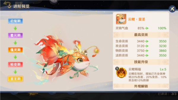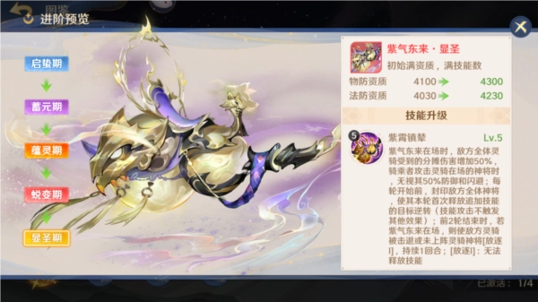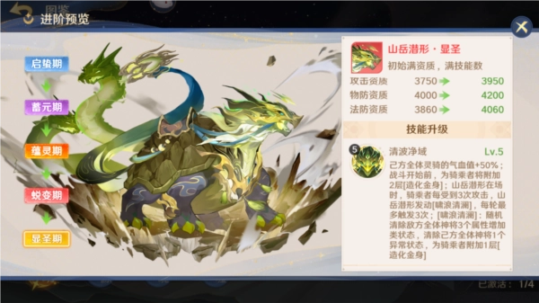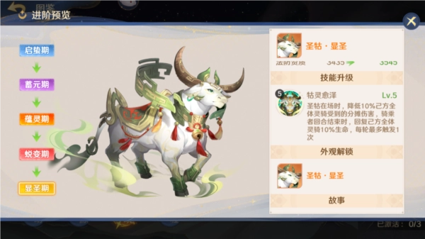 ● 进阶:进阶需消耗多余的灵骑和杂货店购买的瑞彩神玉,同时天赋技能的等级仅受到进阶影响。