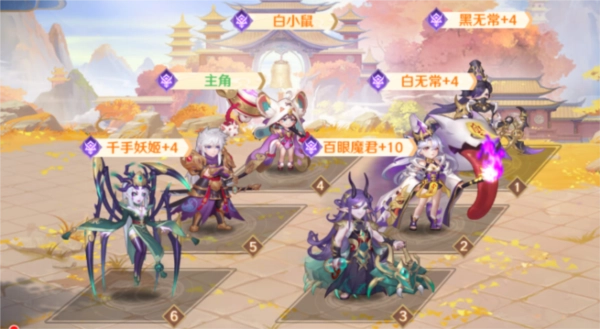 3.阵容搭配三:白骨夫人+黑无常+主角+白小鼠+孟婆+阎君