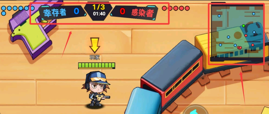 3、右边的小地图可以观察人员位置,上面会提示还有多少存亡者数量。