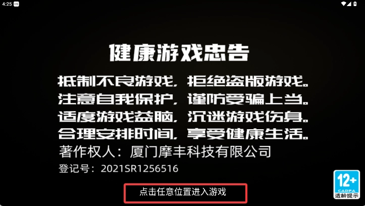 1、游戏安装完成后打开,点击任意位置即可进入游戏。