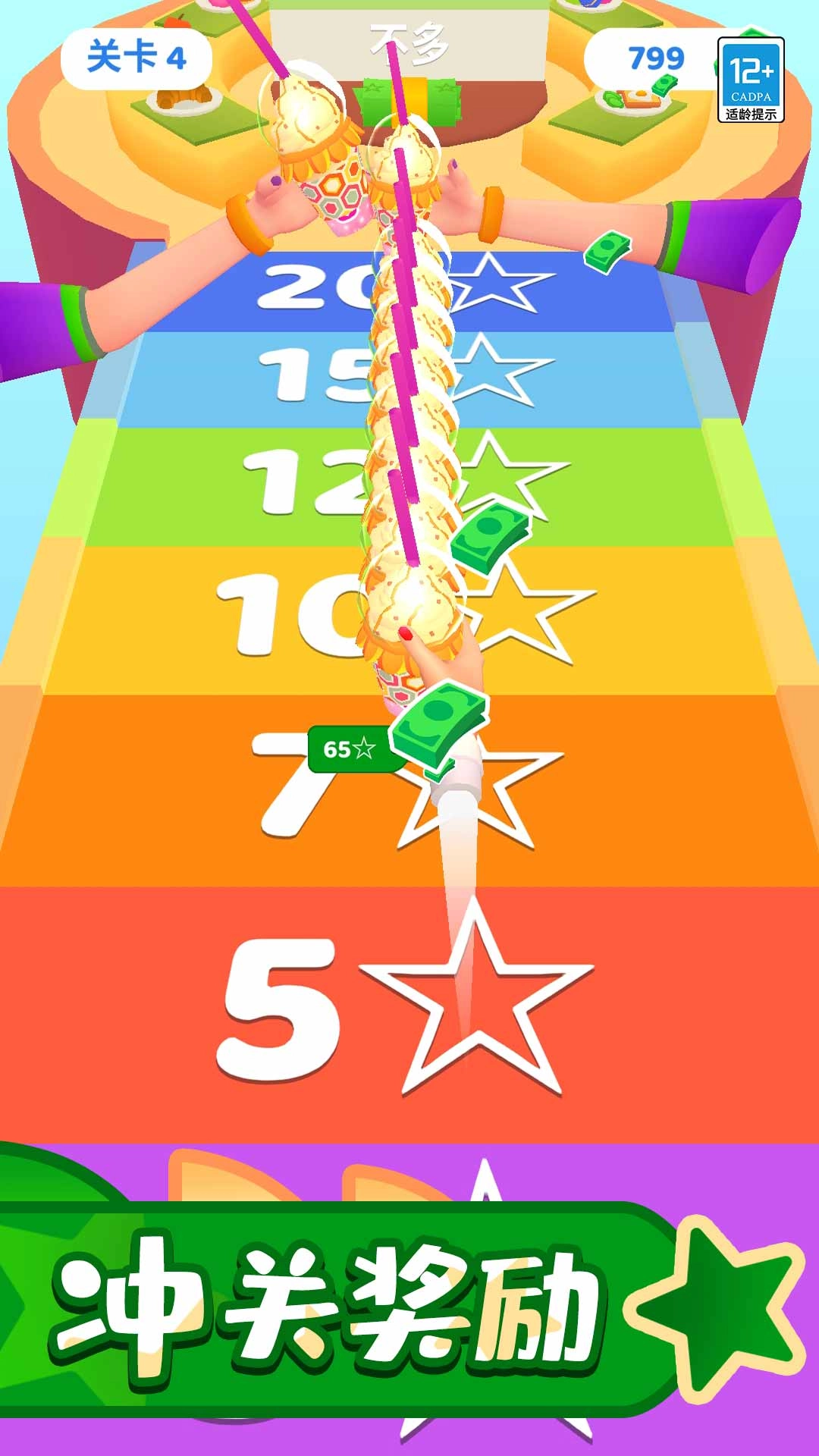 2、收集金币、星星,到关卡终点解锁新杯子、配料,还能升级制作速度,让后续跑酷更顺畅。