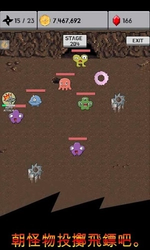 1、点击发射飞镖:通过点击屏幕发射飞镖,瞄准怪物进行攻击,控制点击的时机与频率,确保飞镖能准确命中目标,造成有效伤害。