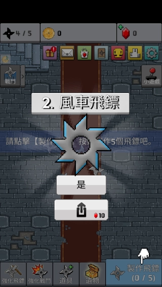 3、制作出特定飞镖后,出现对应选项,点击【是】确认,可消耗资源进行相关操作,提升飞镖能力,推进游戏进程。