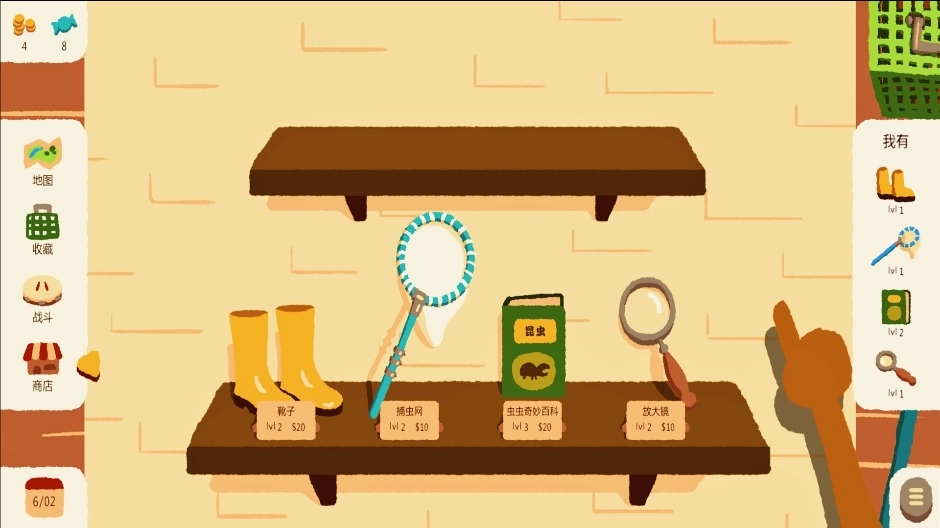 2、装备与捕捉深度关联,不同工具适用于不同环境的昆虫,升级装备可提高稀有虫子的捕捉成功率。