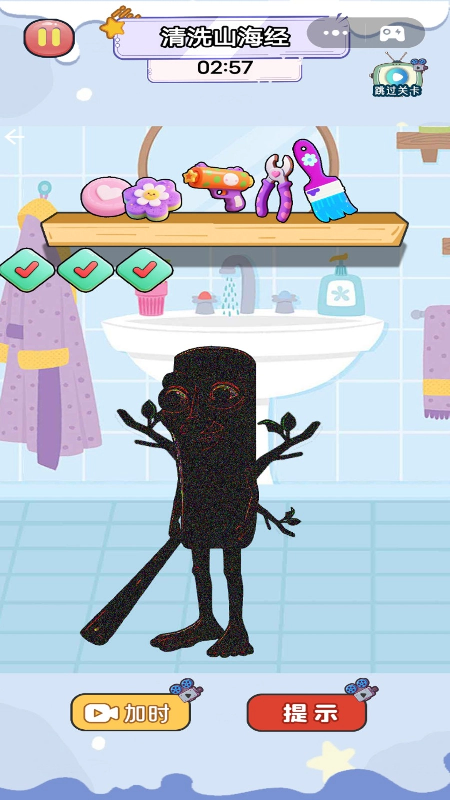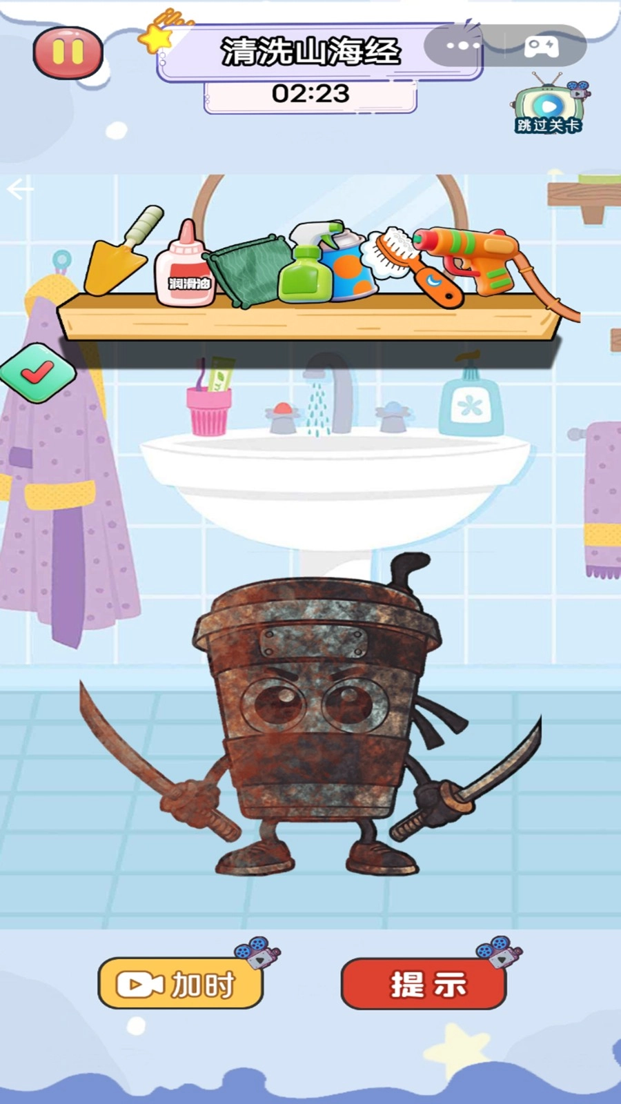 3、通过清洗角色,完成任务,解锁更多角色和清洁工具。
