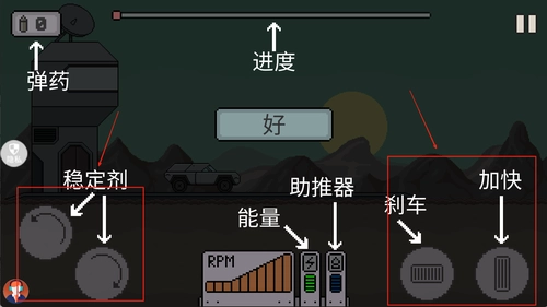 2、左侧控制车辆移动与转向,可灵活调整行驶方向;右侧是射击与加速按钮,界面清晰直观,便于快速应对敌人突袭或障碍阻挡等突发情况。