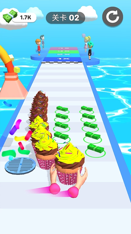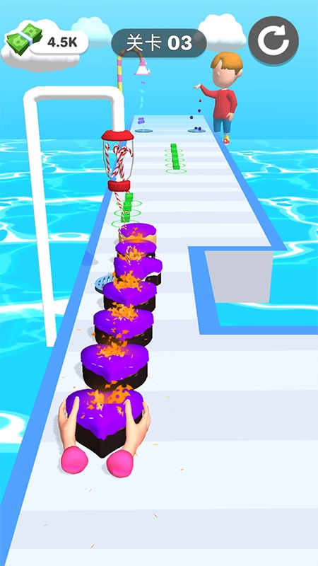 2、玩家在跑酷过程中,需要收集各种食材,并将它们组合成美味的甜点;