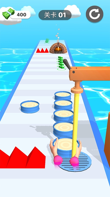 通过向上滑动屏幕,让角色跳跃,躲避障碍或收集高处的食材。