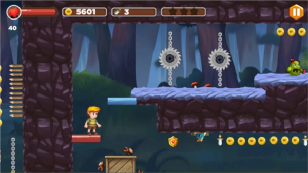 3、玩家需要帮助可怜的杰克在很多困难的道路上完成穿越,很多的金币也等待着玩家们进行收集,提升角色的实力来帮助您更快的冒险,游戏会带给您更多精彩的体验。