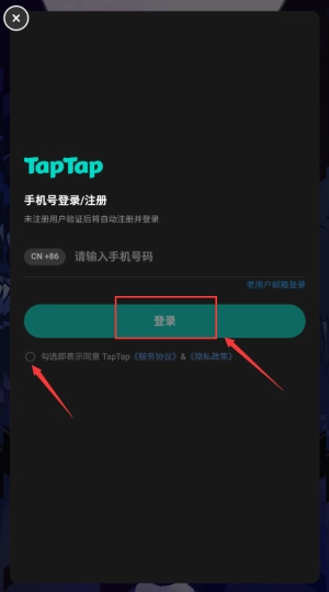 1、点击蓝绿色的按钮,通过TapTap账号进行登录。