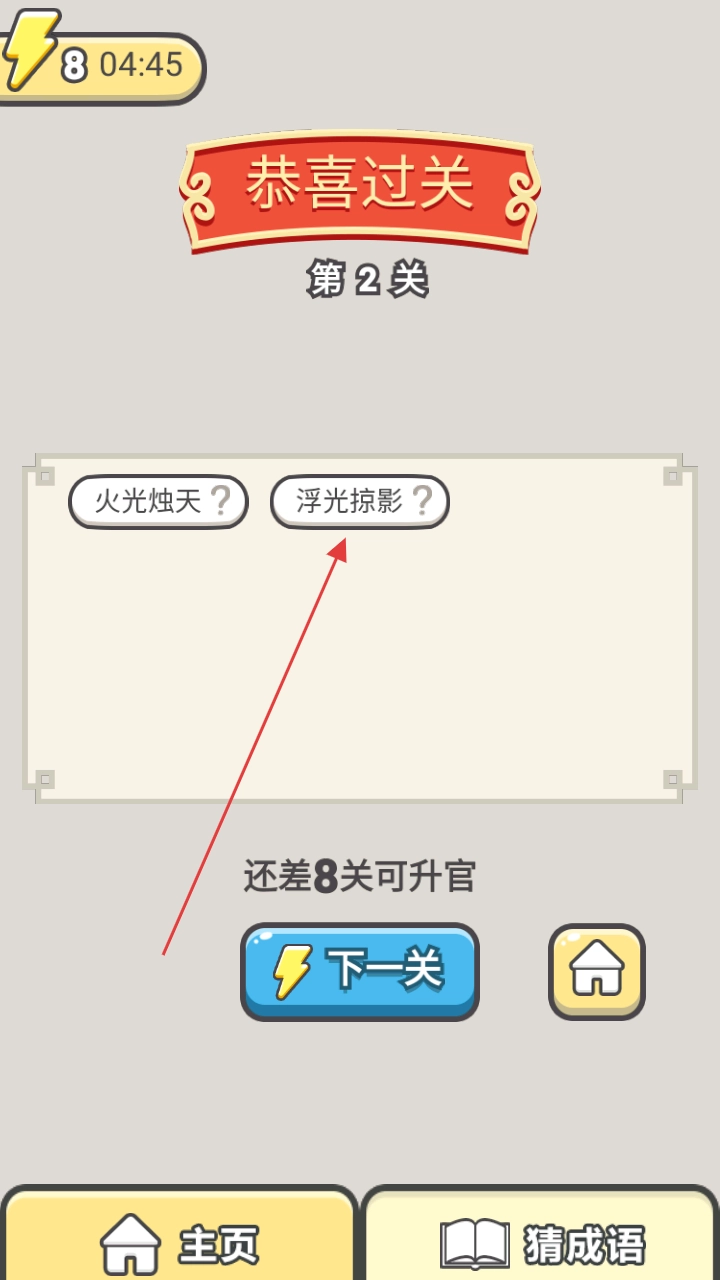 1、记忆挑战成语闯关:玩家需凭借记忆力完成各种成语挑战,从基础填空到复杂联想,每一关都考验对成语的掌握程度,在不断回忆与思考中提升答题能力,感受闯关的成就感。