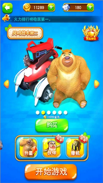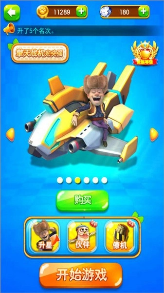2、游戏主页玩家可选择不同的角色升级,还可以选择伙伴、僚机等开始游戏;