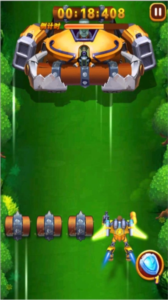 4、玩家在游戏中只需要通过左右滑动控制人物射击boss或躲避障碍物,合理搭配使用道具即可顺利通关;
