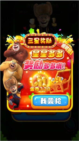 1、与熊大、熊二、光头强一同用射击的方式守护森林