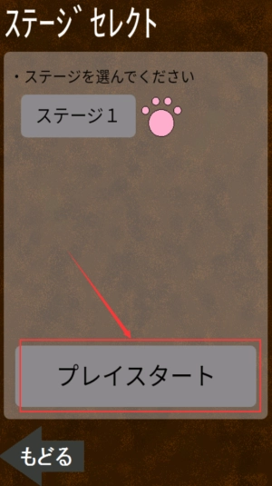3、选择"ステージ1",点击粉色肉垫开始游玩。